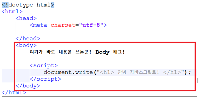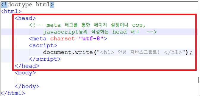 보통은 그림 1처럼 head 영역에 작성하는데 여기에 작성하면 일단 html의 태그가 아닌 것을 따로 몰아서 작성할 수 있어 가독성이 좋아집니다. 사실 이 방법은 보통의 다른 언어들(C, JAVA...)의 작성방법과 유사합니다.(=함수를 상단에 작업함으로 써 이후 함수를 확인하기 쉽다.)